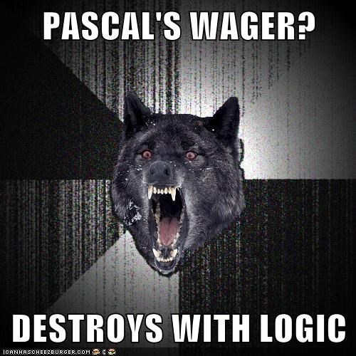Pascal s wager meme. If you believe in god only as a bet that is certainly not a deep mature or adequate faith. This is the first video in the series. Christians are to share and proclaim the gospel of jesus christ which alone is the power of god for salvation to everyone who believes romans 1 16. Can these objections be countered. Pascal s wager is an action role playing game with the style of dark fantasy develped by tipsworks studio. The wager appeals not to a high ideal like faith hope love or proof but to a low. Reconstruct pascal s wager as carefully as possible.